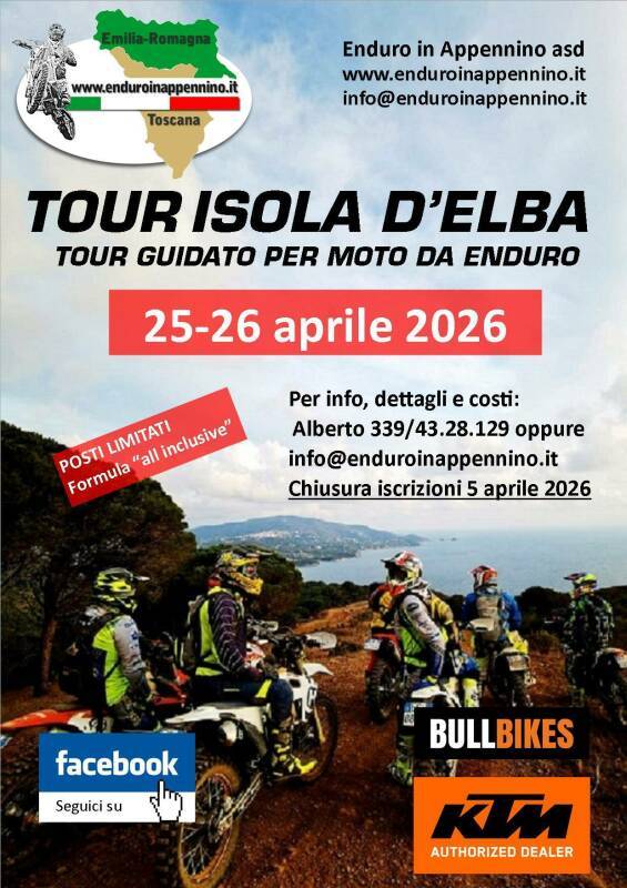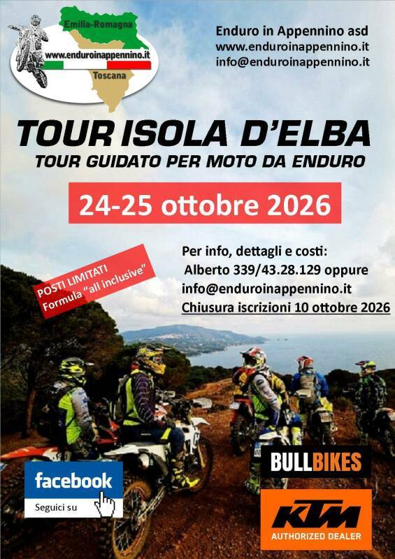 Ti proponiamo escursioni guidate in moto nelle nostre zone, che sono a detta di tutti gli appassionati del settore, fra le più belle in Italia. Guide certificate GMF, percorsi tra boschi, sentieri di montagna e guadi nell'Appennino Tosco-Emiliano e all'Isola d'Elba.